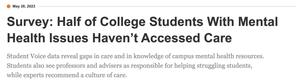 With mental health needs on the rise, campuses are working tirelessly to innovate and expand services for students. But a 2023 study found that 50% of students with mental health needs have not accessed care; in similar studies, this number climbs as high as 60% and 63%.